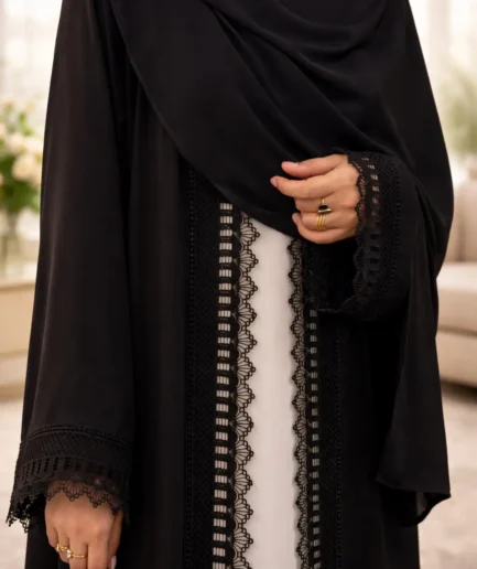Timeless Noir 3-Piece Lace Abaya Set