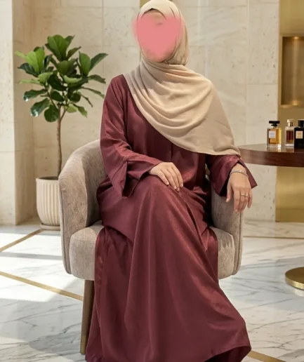 • Maroon Elegant 3-Piece Abaya Set with Sleeveless Inner & Matching Scarf