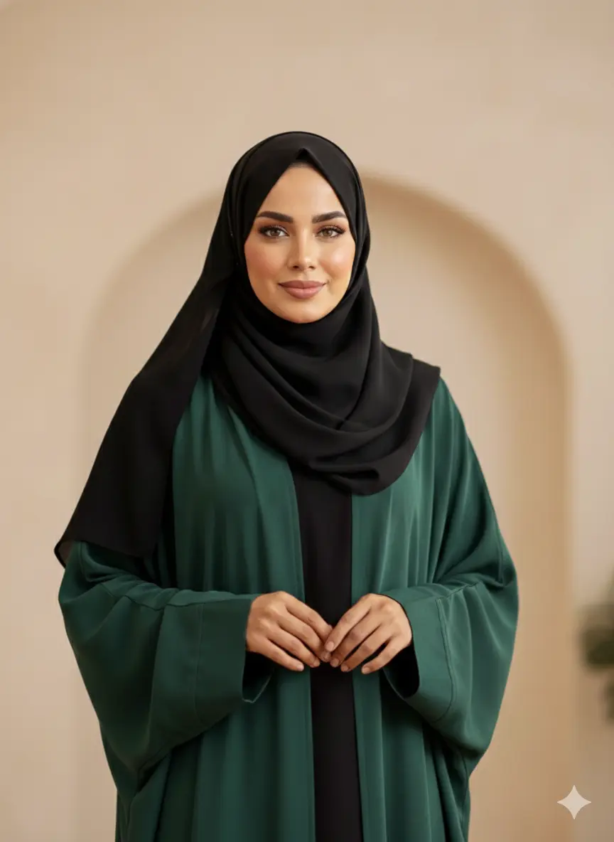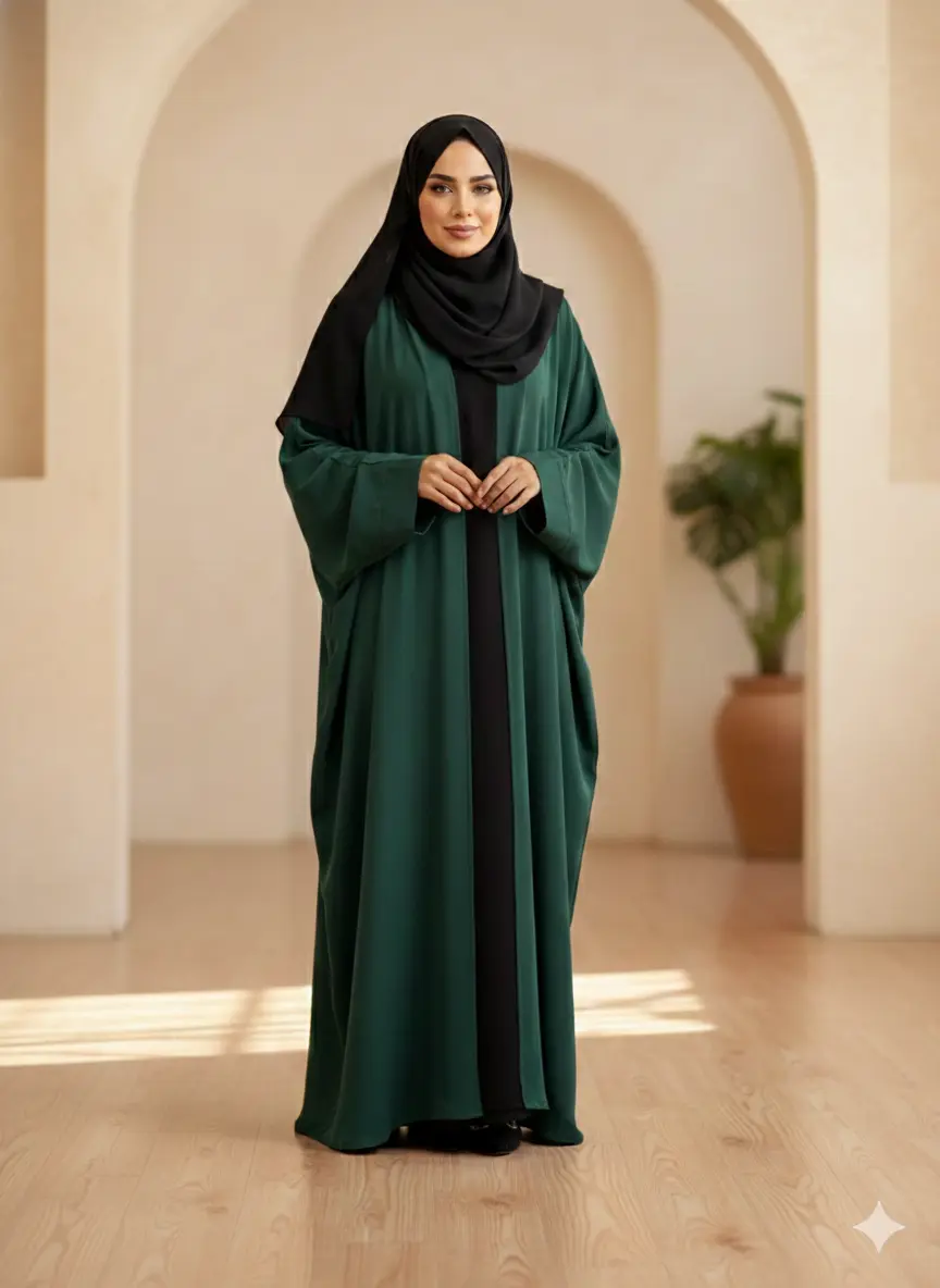 Introduce timeless sophistication to your modest wardrobe with our Dark Green Abaya Set. Designed with a clean, flowy silhouette, this abaya offers a graceful and elegant look that complements both everyday wear and formal occasions.
