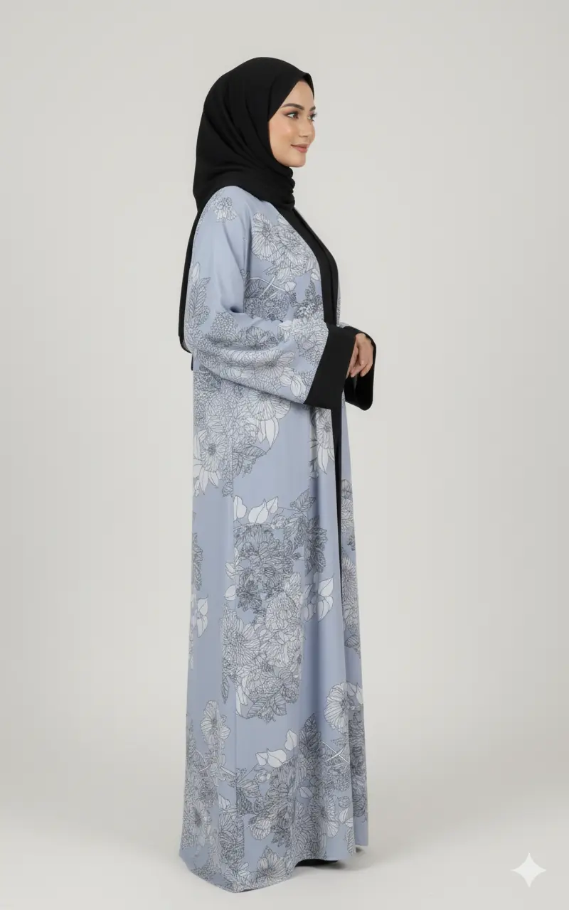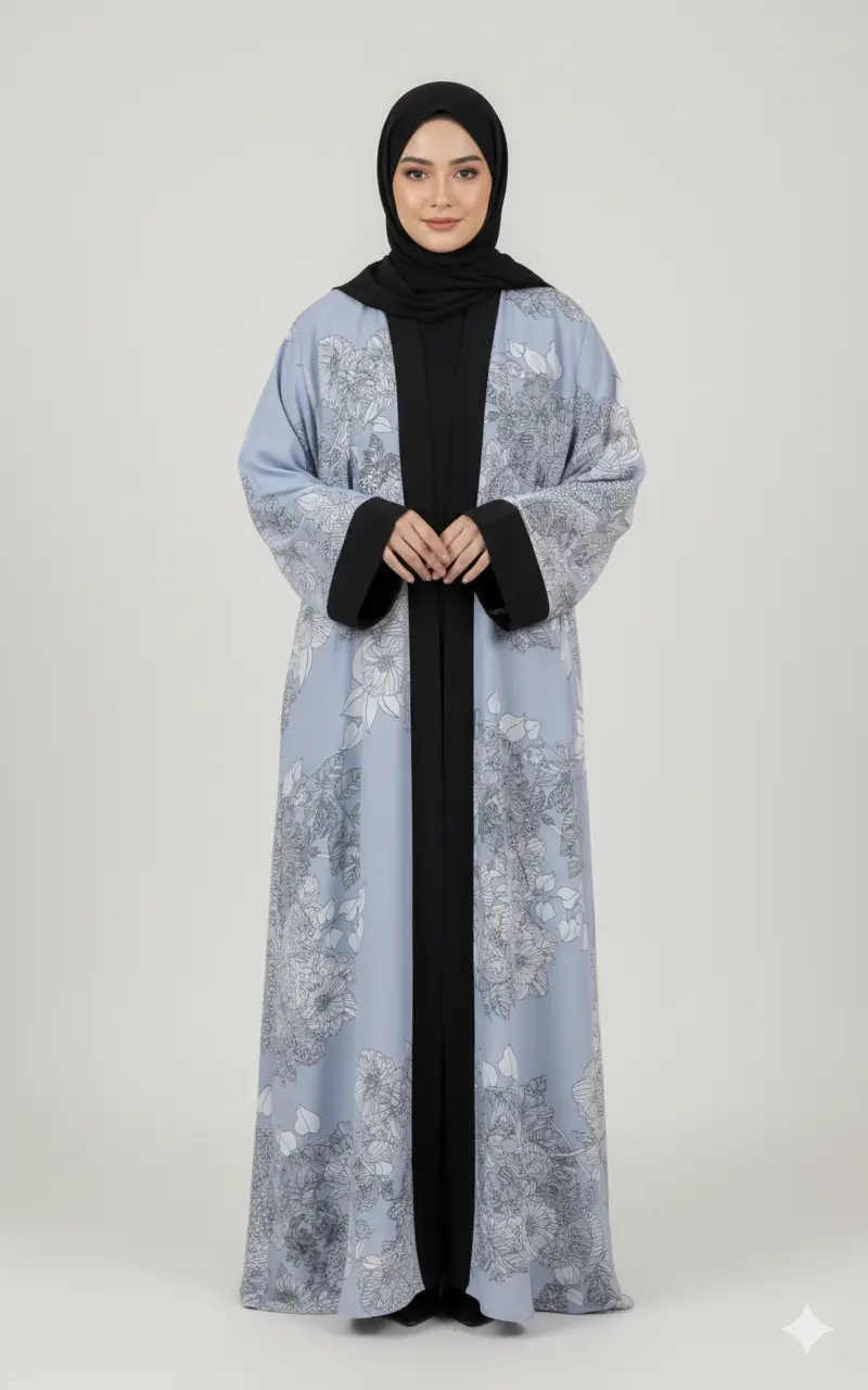 Grace meets elegance in our Floral Mist Abaya. Designed with soft pastel tones and intricate floral patterns, this abaya radiates sophistication and calm. Perfect for both daily wear and special occasions, it blends comfort with refined style.