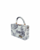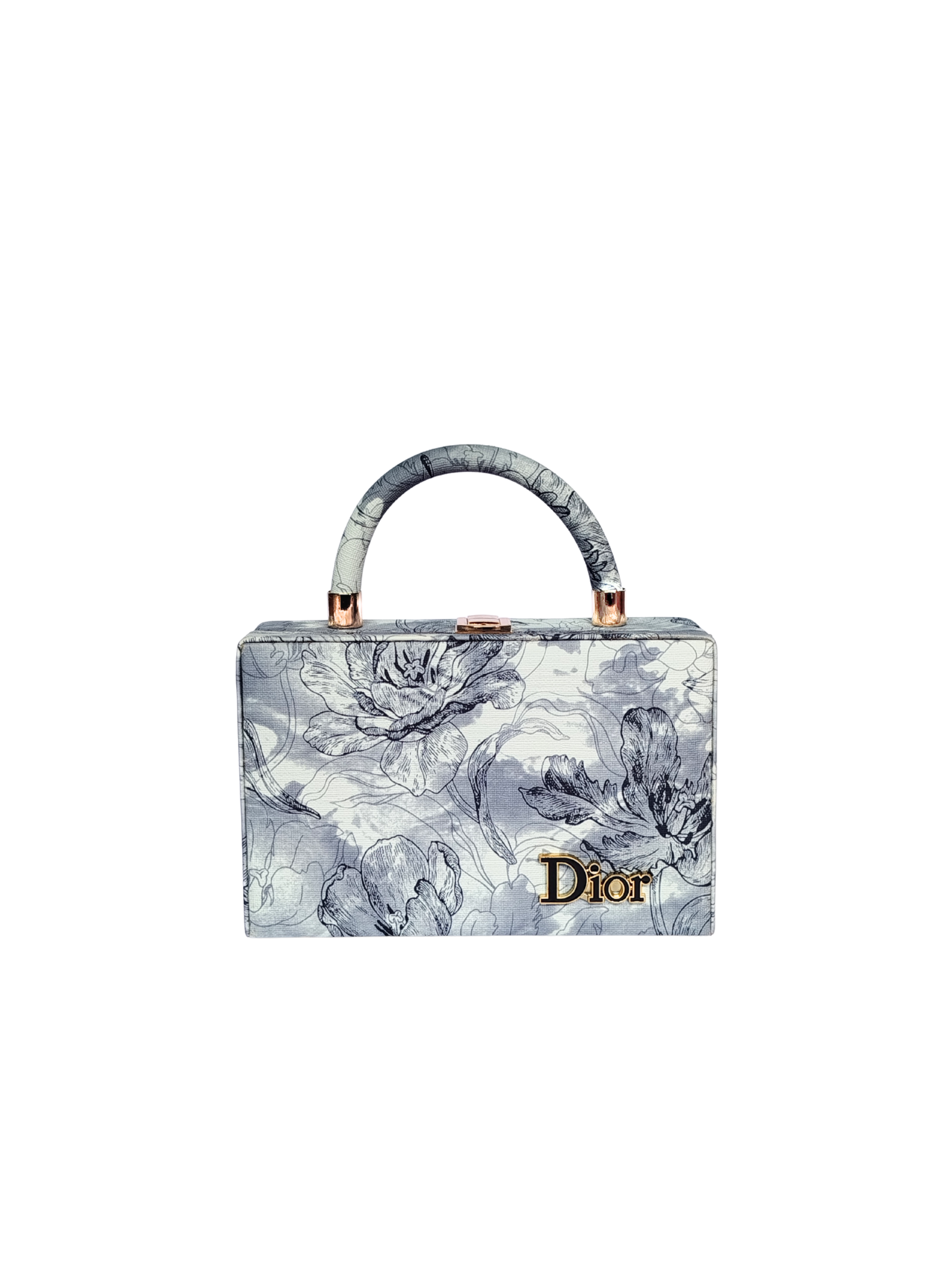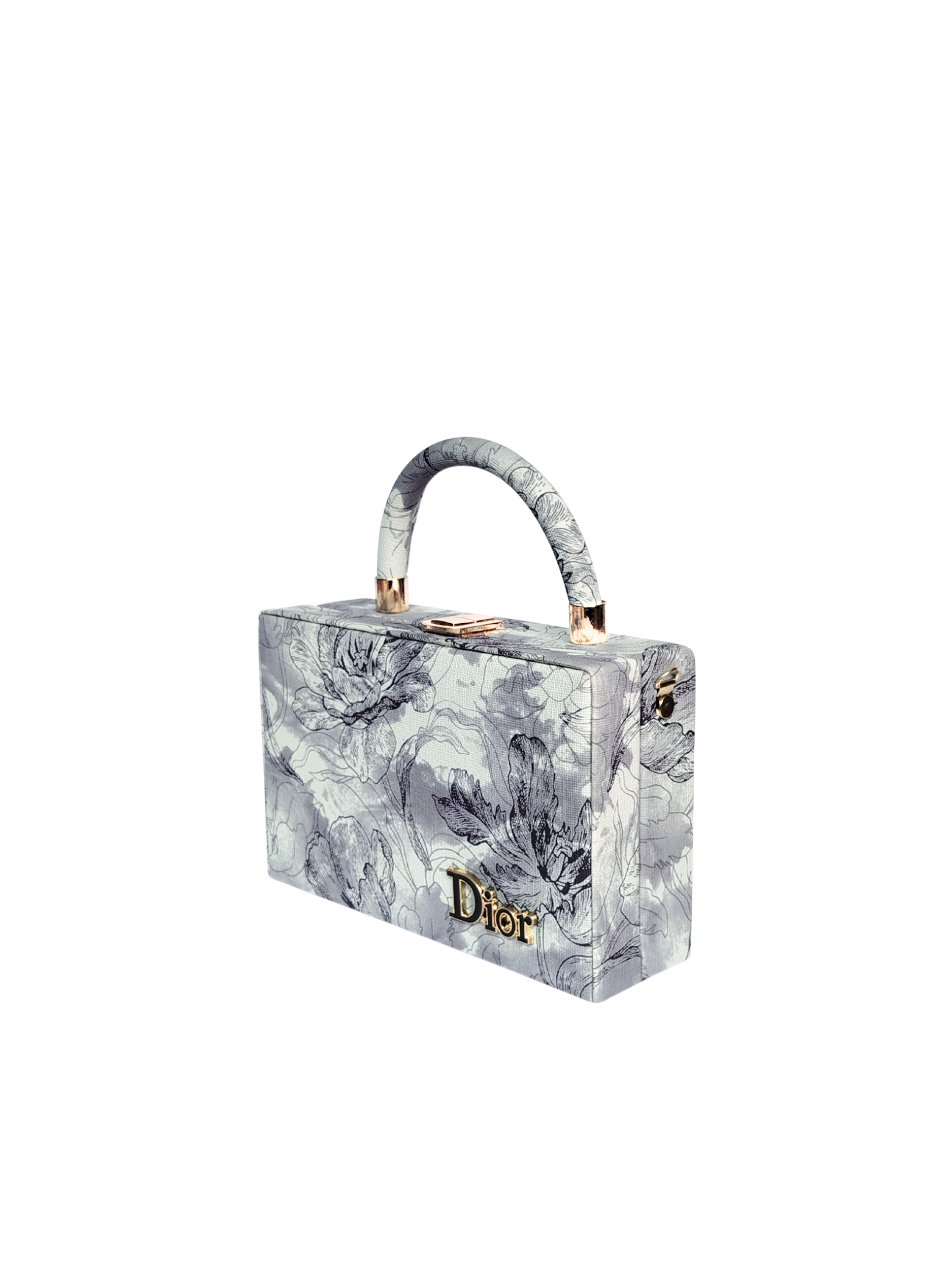 - Design: A structured, rectangular box clutch with a sleek chevron pattern. The bag is accented with a gold-tone top handle and secure clasp.