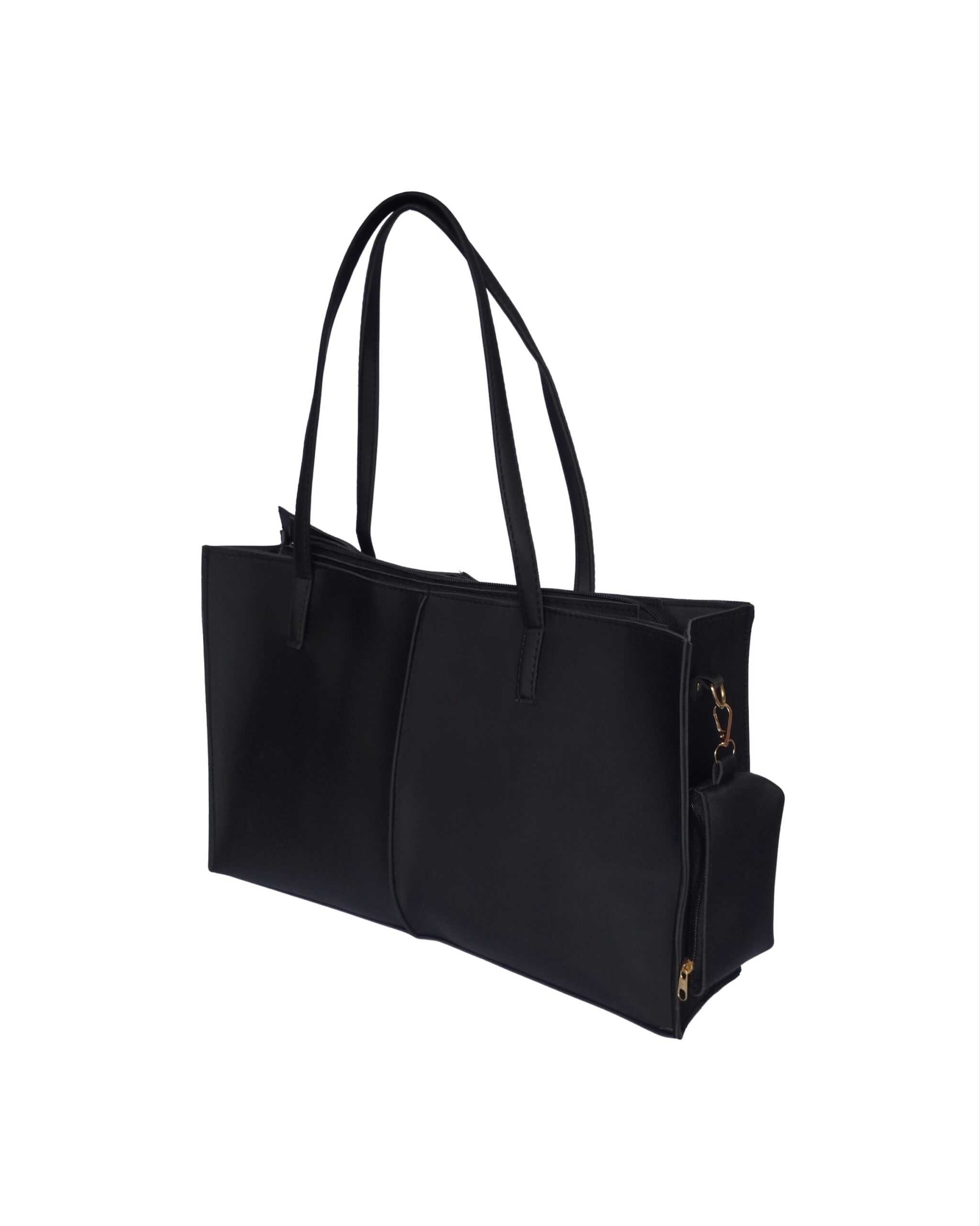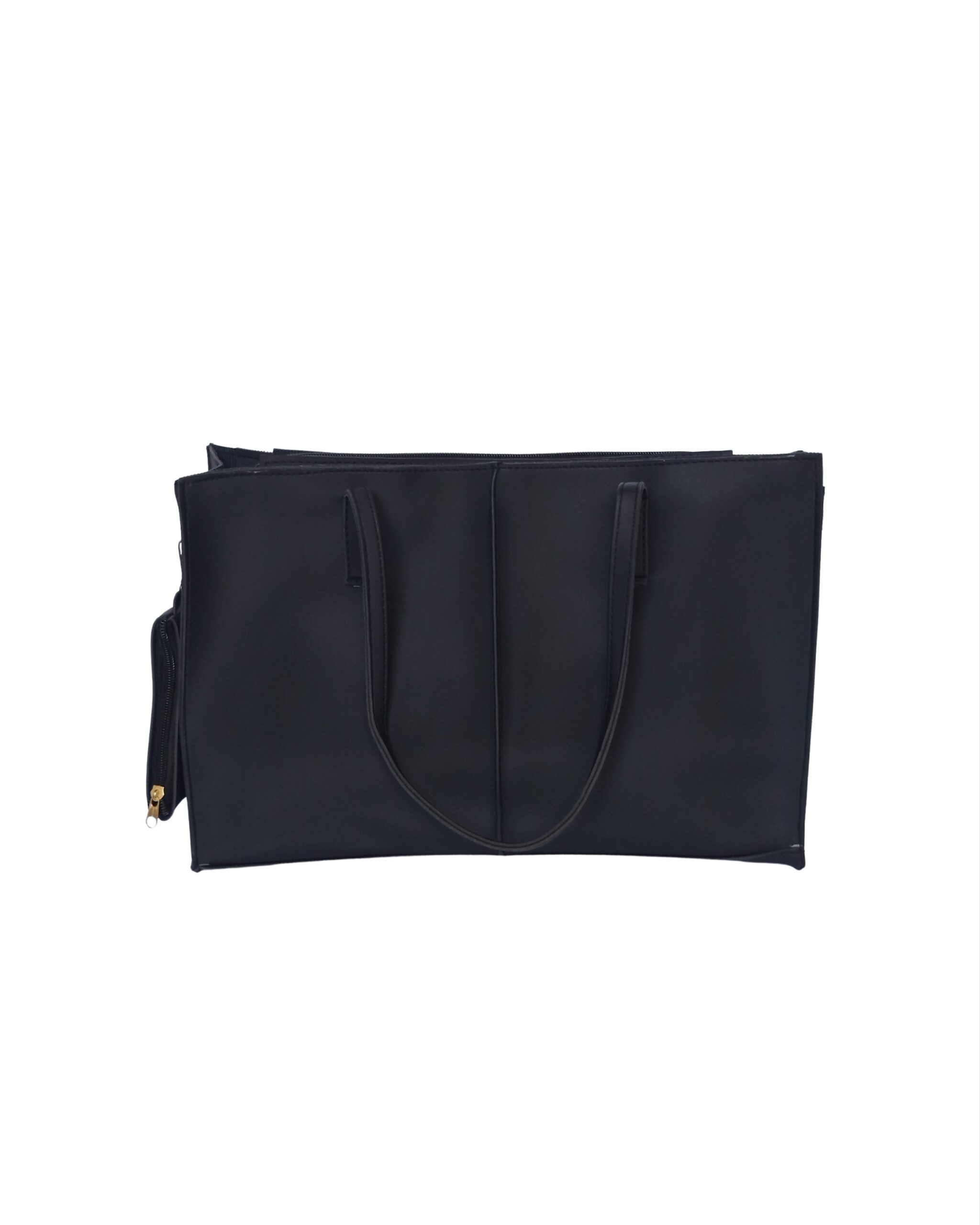 The ultimate blend of style and function. This classic black tote is a timeless essential for work and daily life. The clean, minimalist design and spacious interior make it perfect for carrying your laptop and essentials, ensuring you stay organized and stylish wherever you go.