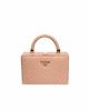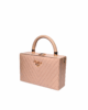 Add a touch of polished elegance to your look with this structured box clutch. The soft blush tone and elegant chevron stitching, accented with a gold-tone top handle, make it a versatile piece perfect for a night out or a refined daytime look.