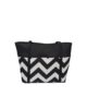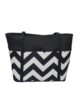 A modern and stylish tote bag with a bold black and white chevron pattern.