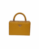 A chic, structured mustard-colored bag with a stitched chevron pattern and gold-tone hardware.