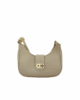 A chic and modern crescent-shaped bag in a smooth Muted Khaki color with gold-tone hardware.