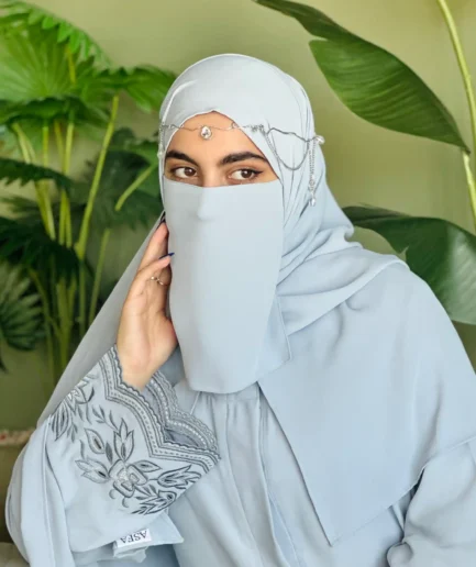 Ice Blue Nida Abaya with Artisanal Embroidery
